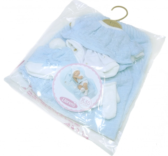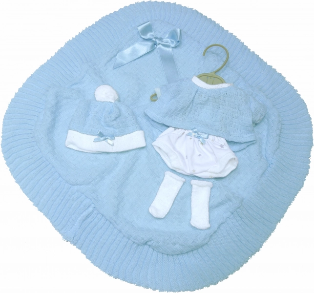 Élégant ensemble de 4 pièces pour poupée bébé New Born de 35-36 cm comprenant une couverture décorative avec un nœud. Parfait pour jouer et styliser votre poupée.