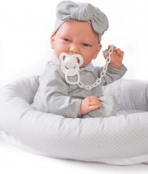 La poupée réaliste Antonio Juan Carla 42 cm séduit par ses finitions soignées et ses possibilités de jeu. Elle dispose d’un corps en tissu doux, d’une tête et de membres en vinyle souple, ainsi que d’articulations positionnables grâce auxquelles elle peut s’asseoir sans appui. Fabriquée à la main en Espagne, livrée avec une sucette avec chaîne, un bandeau et un nid douillet en tissu. Un excellent cadeau dès 3 ans.
