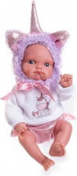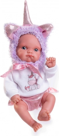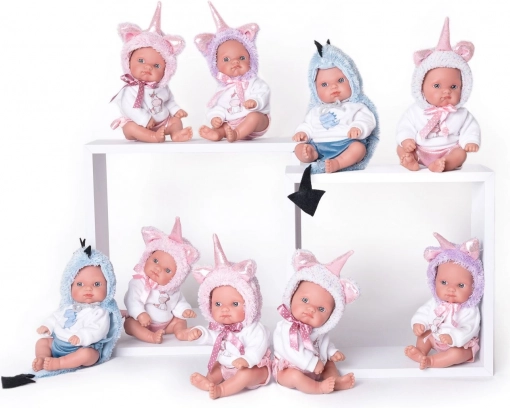 Cette poupée espagnole artisanale représente un nouveau-né avec des détails réalistes qui favorisent le jeu naturel et le développement de l’imagination. Le corps entièrement en vinyle assoupli est doux au toucher et permet de baigner la poupée dans l’eau. L’ensemble est complété par un charmant costume de licorne, faisant de la poupée un cadeau très apprécié.