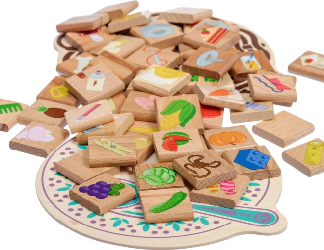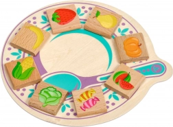 Les enfants posent les plaquettes sur l’assiette ou dans le panier et acquièrent naturellement des connaissances essentielles sur le monde. Idéal pour les préscolaires.