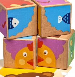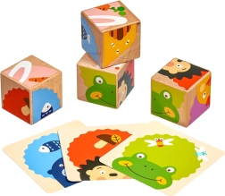 Avec quatre cubes en bois, les enfants composent jusqu’à six images différentes en suivant les modèles fournis. Chaque rotation apporte une nouvelle tâche ludique et maintient l’attention des petits bâtisseurs.