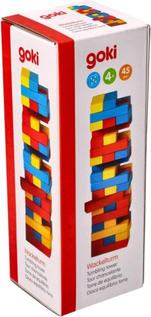 Ce jeu d’équilibre classique en bois de qualité de la marque GOKI propose des règles simples pour un maximum de plaisir. Chaque étage est composé de trois pièces colorées et les joueurs doivent retirer délicatement des blocs des étages inférieurs pour les placer au-dessus. La tour doit rester debout – gagne celui qui maintient l’équilibre le plus longtemps.