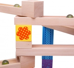 La piste soutient l'orientation spatiale, la motricité fine et la pensée logique. Les enfants seront fascinés par la descente en douceur des billes le long de la piste qu'ils ont eux-mêmes créée.