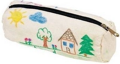 Trousse avec des dessins d’enfants représentant le soleil, des nuages, des arbres et des maisons. Offre de l’espace pour la créativité et encourage l’expression artistique de votre enfant.