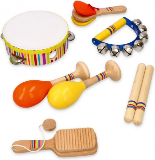 L'ensemble d'instruments de musique arc-en-ciel est un excellent moyen d'inculquer aux enfants l'amour de la musique et de la créativité. Destiné aux enfants de 3 ans et plus, l'ensemble comprend divers instruments tels qu'un tambourin, des maracas, un triangle avec clochettes et des bâtons rythmiques. Ces instruments sont parfaits pour l'exercice de la motricité fine et du sens rythmique.<2p>