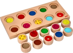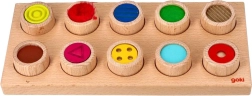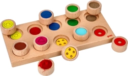 Ce jeu sensoriel en bois de haute qualité allie amusement et apprentissage. Les dix mini-cylindres aux surfaces variées sont placés face cachée, mélangés, puis appariés uniquement par le toucher à l’emplacement exact. Un excellent outil pour le développement sensori-moteur, la concentration et la patience, adapté aussi aux personnes malvoyantes.