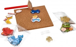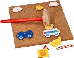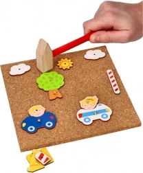 Le marteau à bouchons Ville est un ensemble amusant et éducatif pour les enfants à partir de 3 ans. Cet ensemble comprend des formes en bois colorées que les enfants peuvent fixer sur une planche en liège.