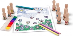 Coffret de tampons en bois et tampons-encreurs colorés