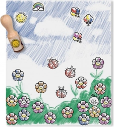 Des corps en bois robustes avec des motifs comme soleil, cœur ou papillon assurent une prise en main confortable et de belles empreintes sur le papier.