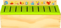 Les enfants insèrent les petites plaquettes illustrées dans les fentes correspondantes sous la grande réglette – ils exercent ainsi l’attention, la logique et la discrimination visuelle.