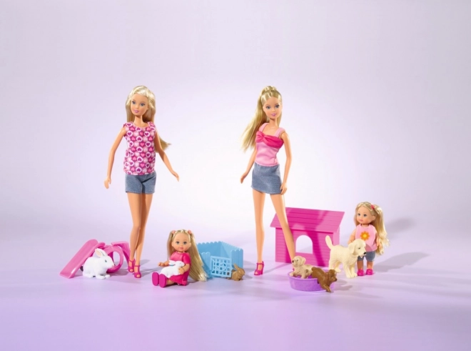 Découvrez un monde plein de fun avec les poupées préférées Steffi et Evi ! Ce set propose deux variantes, chacune avec de mignons petits animaux que vos enfants vont adorer immédiatement.
