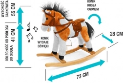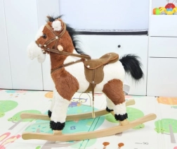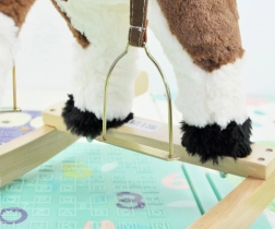 Ce cheval à bascule magique est fabriqué en peluche douce et de haute qualité, garantissant un toucher agréable. Un atout majeur est les lattes en bois et les poignées solides, assurant la stabilité et la sécurité pendant le jeu. Le cheval est équipé d'une selle avec étriers et bride, ce qui rapproche encore plus l'authenticité de monter à cheval.