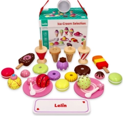 Avec l'élégant ensemble de glaces en bois de la marque Lelin, chaque enfant deviendra un glacier. Cet ensemble contient 25 pièces colorées et est idéal pour les enfants de plus de 3 ans. Les jouets sont fabriqués en bois laqué et sont emballés dans une boîte solide avec un rabat et une poignée pour un transport facile.