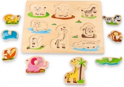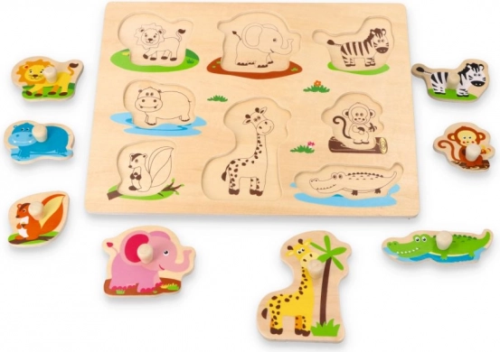 Le puzzle aide les enfants à reconnaître différentes formes et animaux, comme la girafe, l’éléphant ou le crocodile.