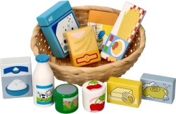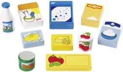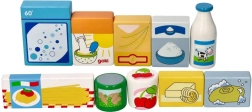 Les pièces en bois colorées rappellent des aliments courants (lait, pâtes, céréales, etc.) et motivent les enfants à apprendre naturellement en jouant.