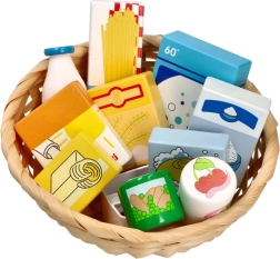 Ce charmant set pour jeu de magasin comprend une sélection d’aliments en bois dans un panier en osier naturel. Grâce à leur aspect réaliste et à leurs couleurs vives, les enfants enrichissent leur vocabulaire, développent leur motricité fine et leurs compétences sociales en jouant au vendeur et au client.