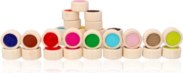 Le pexeso tactile en bois est idéal pour stimuler le toucher et les sensations sensorielles. Les pièces de jeu en forme de petits cylindres en bois massif ont un diamètre de 4 cm et 16 surfaces différentes. Le jeu peut être joué les yeux fermés pour défier la reconnaissance des mêmes surfaces ou comme un pexeso classique en plaçant les pièces côté couleur vers le bas.