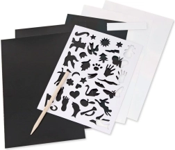 Feuilles à gratter, stylet en bois, gabarit