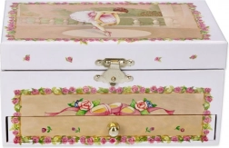 Élégante boîte à musique à bijoux avec tiroir et adorable ballerine, elle ravira chaque petite coquette. À l’ouverture, la mélodie du Lac des cygnes retentit et la ballerine se met à tourner devant le miroir. La boîte offre un espace de rangement pratique pour les petits objets et les bijoux et constitue un bel élément décoratif pour la chambre d’enfant.