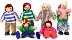 Cette famille finement réalisée est un complément idéal à toute maison de poupées. Les figurines en bois massif, habillées de textiles colorés, sont agréables au toucher, sûres et résistantes pour un jeu quotidien. Grâce aux différentes tailles (parents, enfants, bébé), les enfants créent facilement leurs propres histoires de vie familiale.