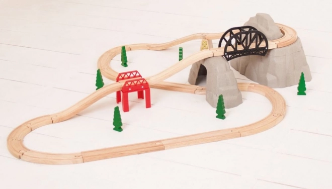 Vivez une aventure avec cet ensemble de train en bois qui offre une magnifique voie de montagne. L'ensemble comprend :