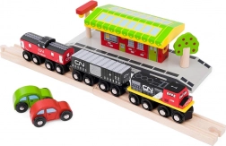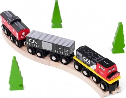 Le circuit de train en bois CN offre des moments de jeu amusants et créatifs pour vos enfants. Il est composé d'un train de marchandises et de rails, que les enfants peuvent facilement assembler et agrandir avec d'autres ensembles disponibles. Ce jouet:
