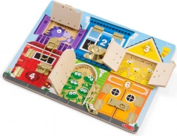 Le tableau contient différents types de serrures et de gâches qui développent la dextérité manuelle et la créativité des enfants.