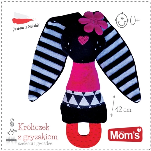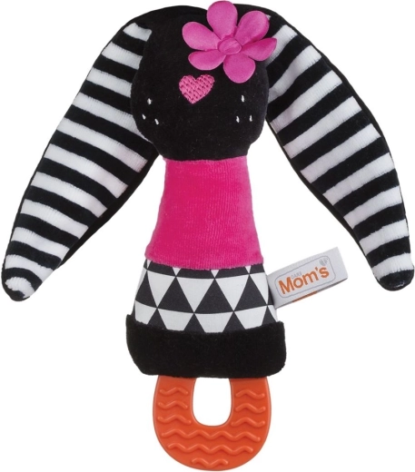 Adorable lapin en peluche, premier jouet idéal pour les nouveau-nés – il combine des oreilles bruissantes, un pouet intégré dans le ventre et un anneau de dentition sûr. Les motifs noir‑et‑blanc contrastés attirent naturellement le regard de bébé et aident à développer la perception des couleurs. La matière douce et agréable favorise les câlins et l’exploration sensorielle.