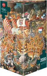 Puzzle Bataille de Trafalgar de l'illustrateur renommé Michael Ryba vous transporte dans des moments historiques avec de magnifiques graphismes. L'emballage contient 2000 pièces et une boîte triangulaire unique avec une affiche comme modèle pour l'assemblage.