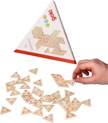 Le Tri-Domino de Goki est une approche non conventionnelle d'un jeu classique, destiné à tripler le plaisir! Les joueurs doivent assembler des pièces triangulaires pour former un grand triangle avec une longueur de côté quadruple ou quintuple.