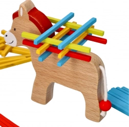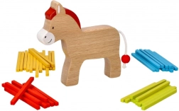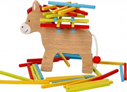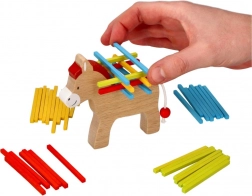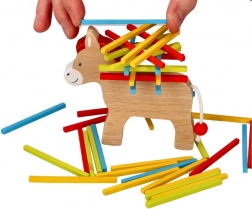 Le jeu aide à développer les compétences de motricité fine grâce au placement minutieux des bâtonnets sur l’ânon.