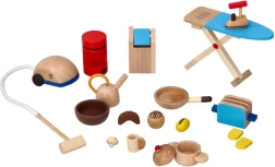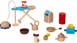 Avec ce magnifique ensemble de 19 jouets en bois, les enfants passeront des heures de plaisir à domicile. Le set inclut divers appareils ménagers qui favorisent le développement des enfants et leur apprentissage du monde qui les entoure. Le paquet contient des jouets tels qu'une cafetière, une théière, un aspirateur, une planche à repasser, et bien plus encore. Chaque pièce est soigneusement conçue pour assurer sécurité et esthétique.
