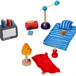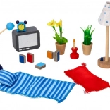 Plongez dans le monde de la fantaisie et du plaisir avec cet ensemble fascinant de meubles miniatures et d'accessoires. Cet ensemble est conçu pour les enfants à partir de 3 ans et offre une multitude de possibilités pour le jeu créatif. Les objets en bois et en plastique, tels que les lampes, la télévision, les plantes et les livres, enrichissent chaque petite chambre d'enfant.