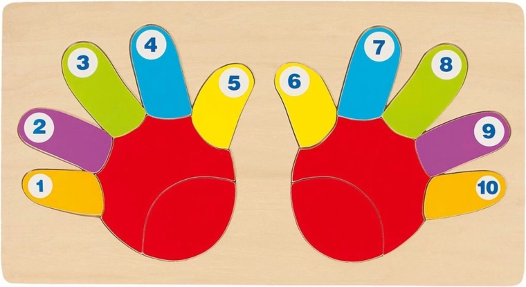 Découvrez le puzzle en bois à motif de mains de la marque GOKI, à la fois ludique et éducatif. En jouant, les enfants apprennent à compter sur leurs doigts et entraînent la coordination œil–main, la pensée logique et l’imagination. Chaque main comporte 7 pièces et les poignées en bois facilitent la manipulation des éléments.