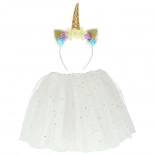 Costume de carnaval licorne – ensemble enfant avec serre-tête et jupe en tulle – Blanc