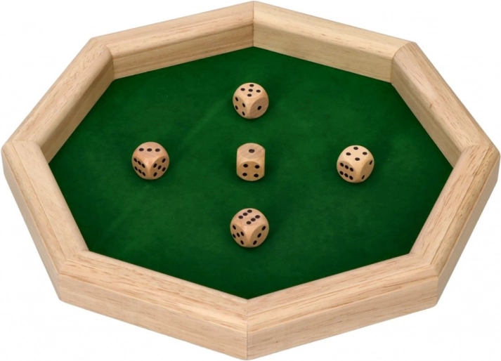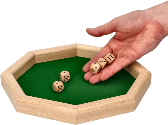 Le plateau est en bois et sa surface est revêtue de suédine pour un impact plus silencieux et un meilleur contrôle des lancers. Des dés en bois agréables en main sont inclus. Ses dimensions compactes facilitent le transport et le rangement.