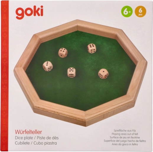 Jeu de société élégant VRHCÁBY de GOKI pour s’amuser en famille ou entre amis. Il se joue avec 5 dés, on note les combinaisons et l’objectif est d’obtenir le plus de points possible. Finition de qualité en bois et surface de jeu en suédine pour des lancers agréablement silencieux. Format compact 25,7 × 25,7 cm, dés 1,6 cm.