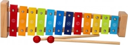 Le xylophone coloré Goki avec songbook Arc-en-ciel est un excellent choix pour une première initiation à la musique. Sa structure en bois robuste combinée aux lames métalliques garantit un son agréable et une grande durabilité. Grâce aux noms des notes sur les lames et au guidage coloré du songbook, les enfants comprennent facilement les liens entre les couleurs, les tons et les mélodies simples.