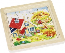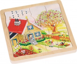 Ce puzzle en bois éducatif offre une combinaison unique d'amusement et d'apprentissage pour les enfants à partir de 3 ans. Chacune des quatre images représente une des saisons et enseigne les bases de la nature de manière ludique.