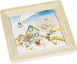 Chaque image sur le puzzle représente une saison, aidant les enfants à comprendre les changements dans la nature pendant l'année.