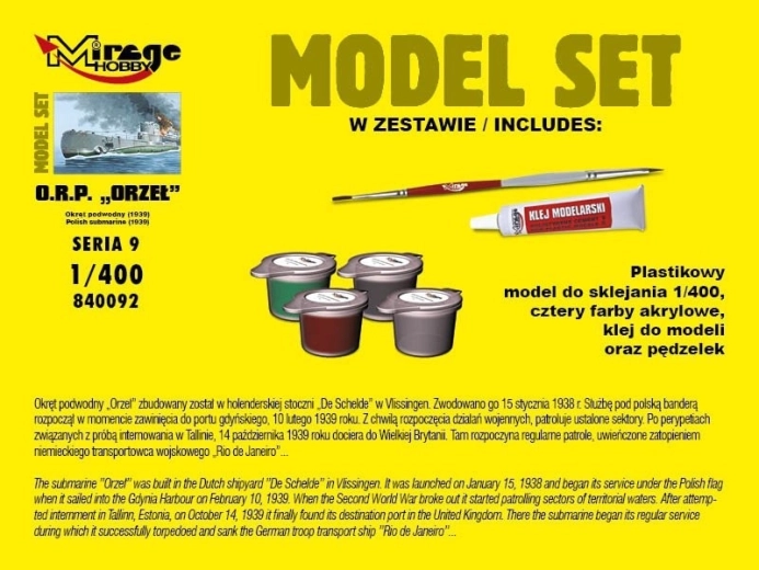 La maquette contient un modèle en plastique de sous-marin à assembler.