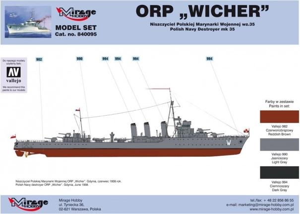 - Fidélité historique – reproduction réaliste du destroyer polonais ORP WICHER.