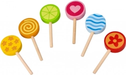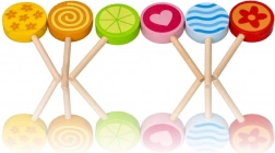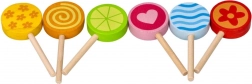 Découvrez le plaisir des jouets en bois colorés en forme de délicieuses sucettes de Goki. Cet ensemble comprend six designs différents, incluant rayures, fleurs et cœurs. Chacune d'elles est idéale pour l'imagination et le jeu des enfants en même temps.