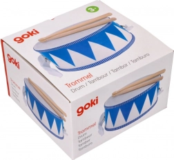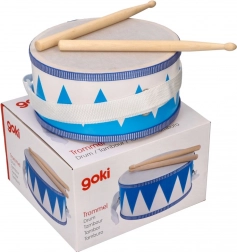 Ce tambour pour enfants de la marque Goki est équipé d'une sangle pour être confortablement porté sur le corps, ce qui permet aux enfants d'avoir les mains libres en jouant.