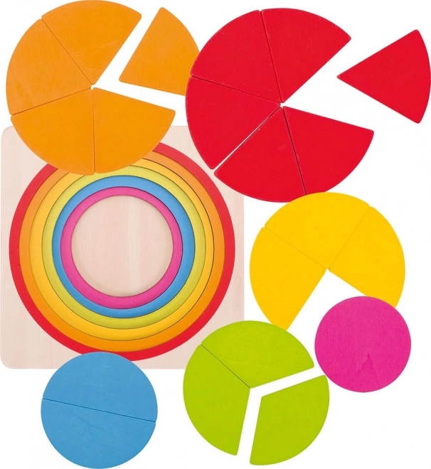 Découvrez le puzzle encastrable multicouche GOKI Cercle, conçu pour tous les petits passionnés de construction qui souhaitent apprendre et développer leurs compétences. Ce puzzle comprend six cercles de tailles différentes, chacun divisé en un nombre variable de secteurs, ce qui offre au total 21 pièces pour un jeu créatif.