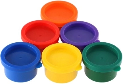 - 6 peintures au doigt (orange, rouge, bleu, vert, jaune, violet)