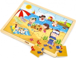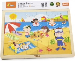 Le puzzle en bois VIGA été – 24 pièces est un premier puzzle idéal pour les enfants dès 2 ans. Des pièces et un cadre en bois robustes aident à maintenir le motif en place, permettant aux enfants de se concentrer sur l’assemblage et le plaisir du résultat. L’illustration estivale joyeuse de plage développe naturellement le vocabulaire et l’imagination.