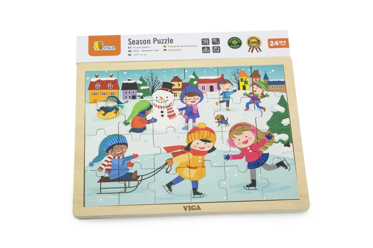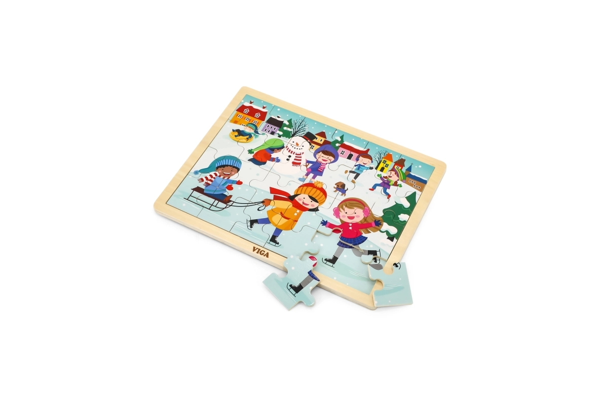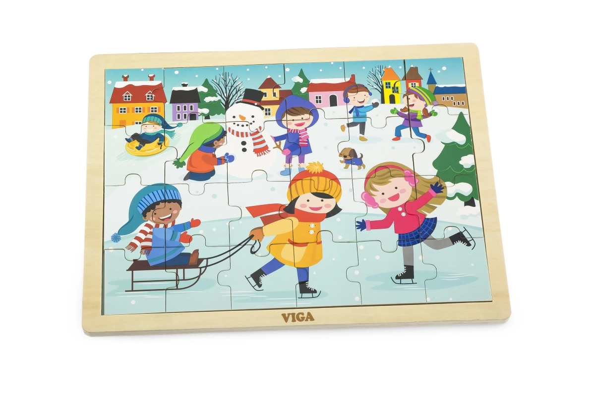 Ces puzzles en bois au motif hivernal sont un excellent choix pour les enfants à partir de 24 mois. La taille de chaque pièce est adaptée aux petites mains et la construction solide garantit une longue durée de vie. Grâce aux 24 pièces, les enfants entraînent leur concentration et éprouvent la joie d’un tableau terminé.
