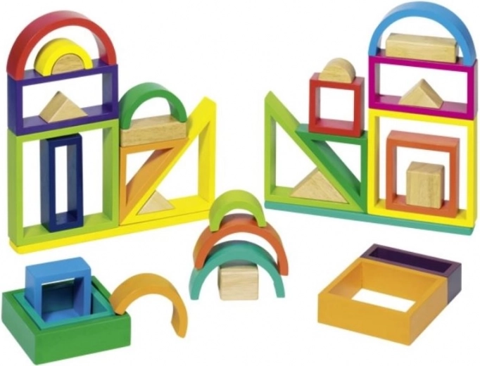 Le jeu de construction en bois Goki Arc‑en‑ciel offre aux enfants d’infinies possibilités de construction et d’apprentissage par le jeu. Grâce à 38 pièces de qualité aux couleurs vives, il est facile de créer des combinaisons originales qui stimulent l’imagination et la perception visuelle. La diversité des formes et des couleurs encourage naturellement l’expérimentation et la découverte.
