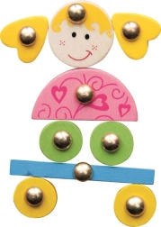 Les pièces en bois colorées avec attaches métalliques sont faciles à saisir et développent la motricité fine, entraînent la coordination œil–main et l’apprentissage des couleurs et des formes.